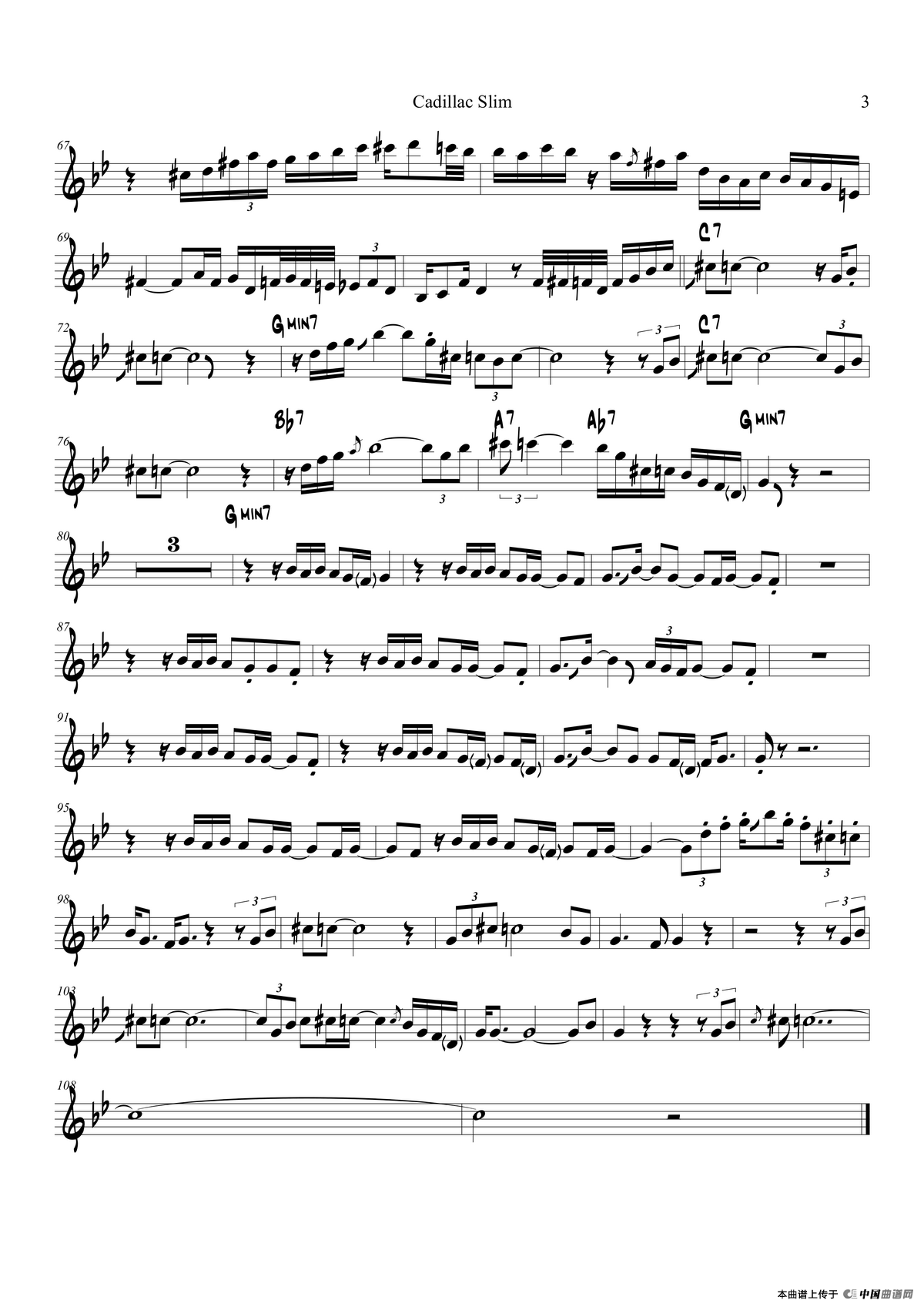 Cadillac Slim Rick Braun Trumpet萨克斯谱(Trumpet in Bb),Cadillac Slim Rick Braun Trumpet萨克斯简谱"