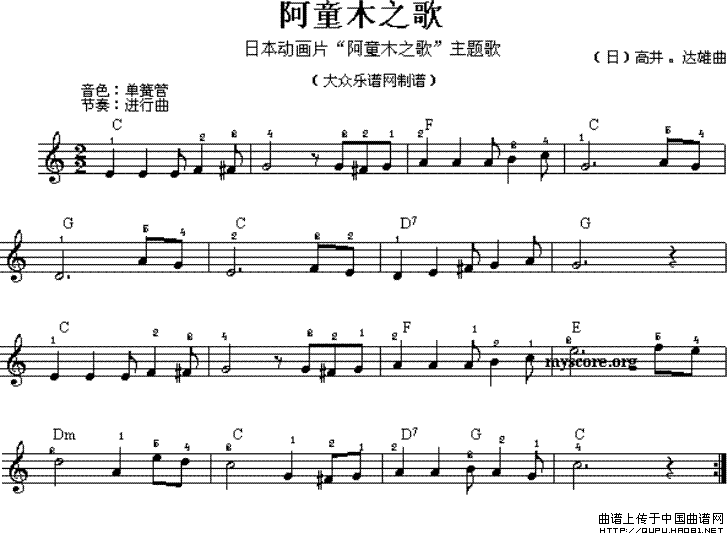 阿童木之歌电子琴谱,阿童木之歌简谱