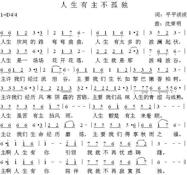 人生有主不孤独简谱,人生有主不孤独歌曲简介