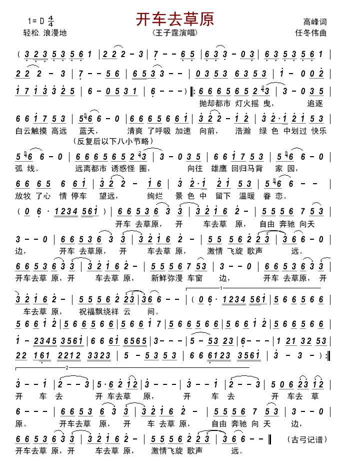 开车去草原歌曲简介开车去草原是一首非常传统的歌曲,它在中国的大草原上已经流传了很多年。这首