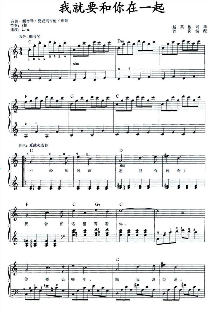 我就要和你在一起简谱,我就要和你在一起歌曲简介