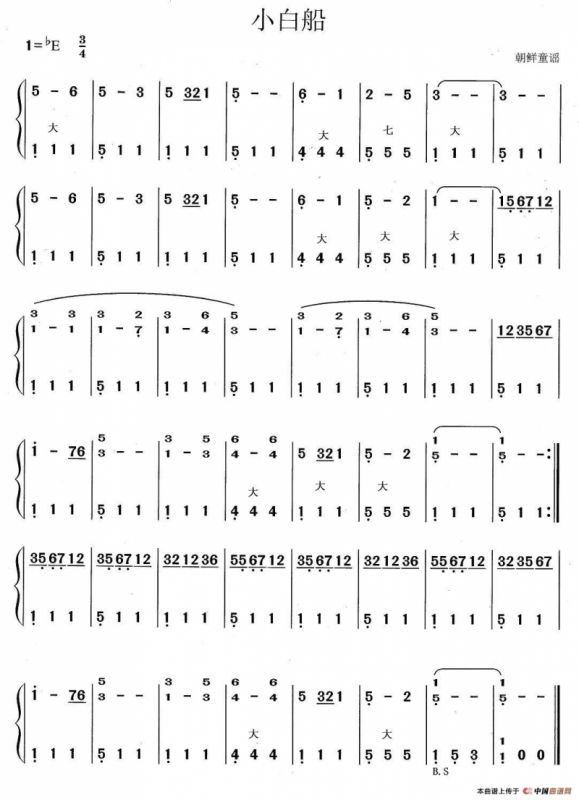 小白船手风琴谱(线谱+简谱),小白船简谱"