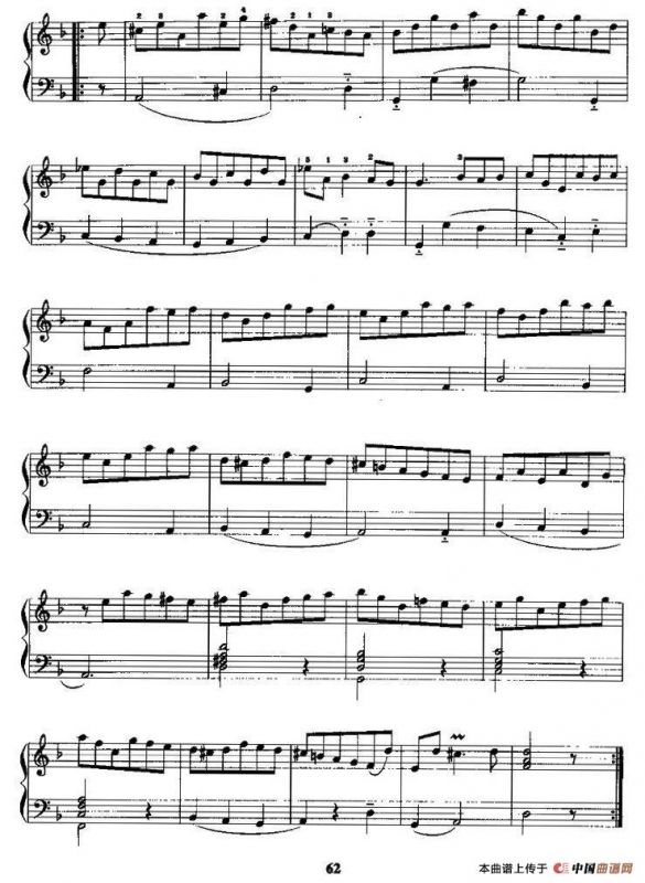 布列舞曲手风琴谱(W·F·巴赫作曲版),布列舞曲简谱"