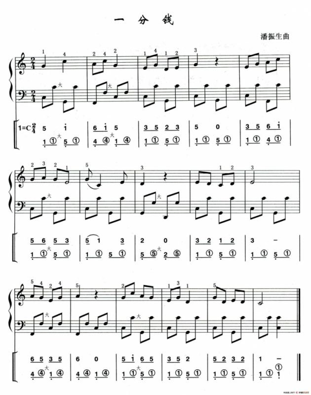 一分钱手风琴谱(线简谱混排版),一分钱简谱"
