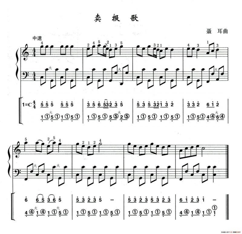 卖报歌手风琴谱(线简谱混排版),卖报歌简谱"