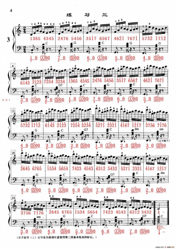 哈农《手风琴手指练习》之三手风琴谱(五线谱+简谱),哈农《手风琴手指练习》之三简谱"