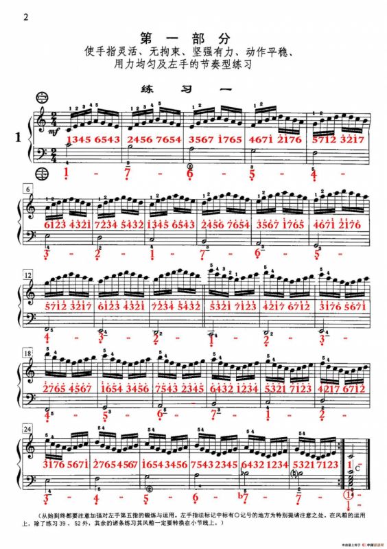 哈农《手风琴手指练习》之一手风琴谱(五线谱+简谱),哈农《手风琴手指练习》之一简谱"