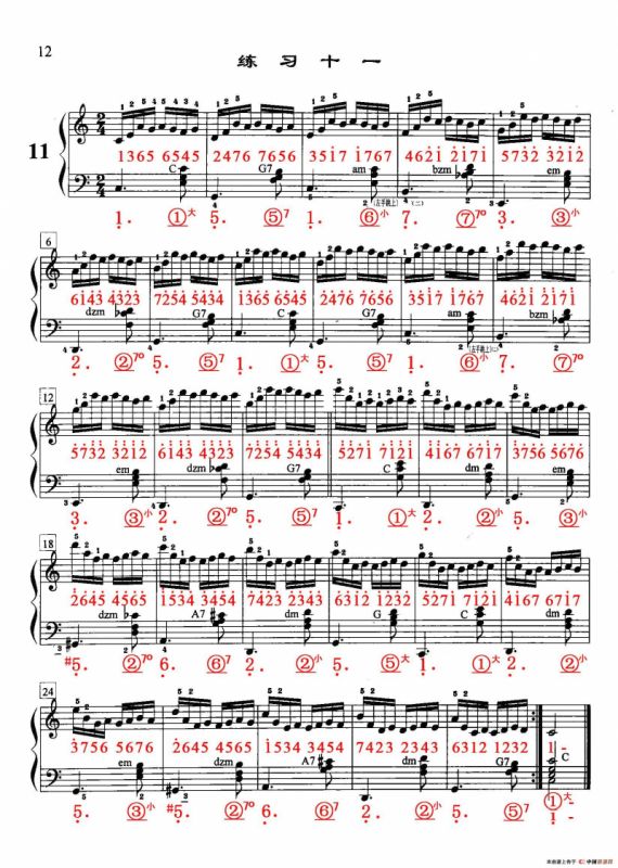 哈农《手风琴手指练习》之十一手风琴谱(五线谱+简谱),哈农《手风琴手指练习》之十一简谱"