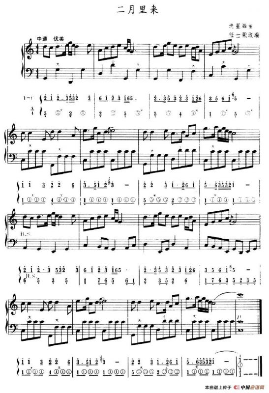 二月里来手风琴谱(五线谱+简谱),二月里来简谱"