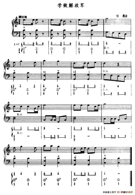 学做解放军手风琴谱(五线谱+简谱),学做解放军简谱"