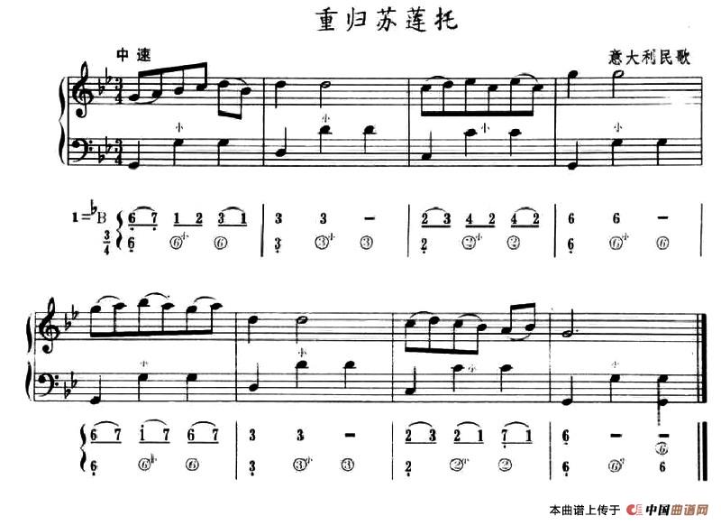 重归苏莲托手风琴谱(五线谱+简谱),重归苏莲托简谱"