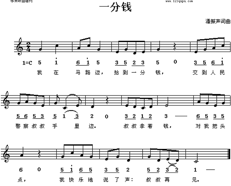 我在马路边捡到一分钱简谱,我在马路边捡到一分钱歌曲简介
