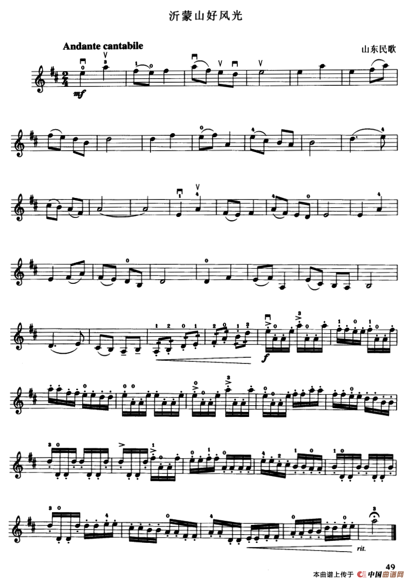 沂蒙山好风光提琴谱,沂蒙山好风光简谱