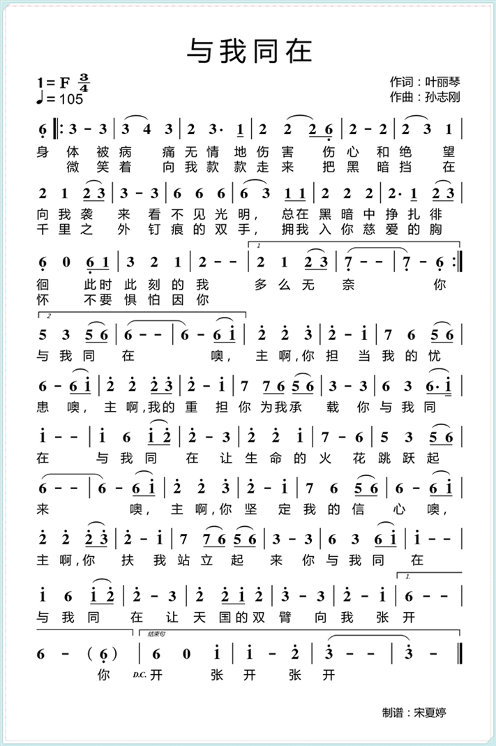 与我同在歌曲简介歌曲《与我同在》是一首感人深的歌曲,由陈奕迅演唱。这首歌曲是由周杰伦作曲,方