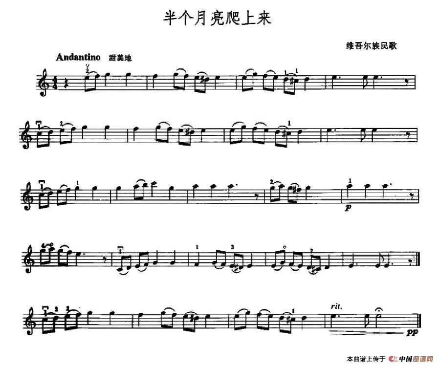 半个月亮爬上来提琴谱,半个月亮爬上来简谱
