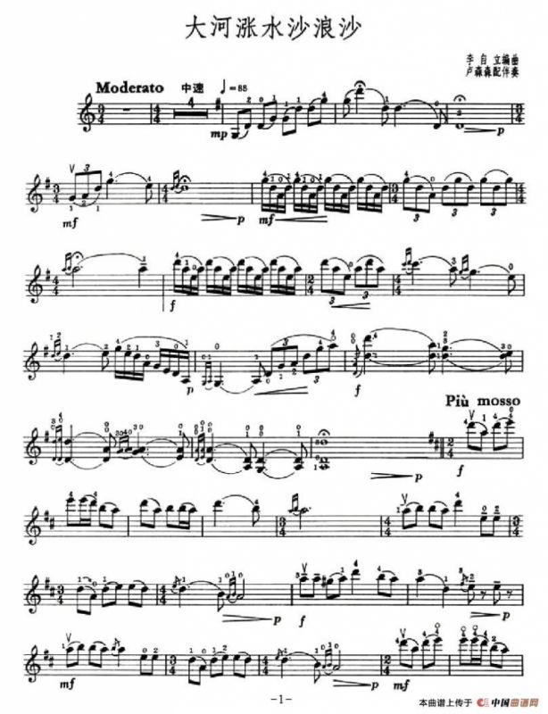 大河涨水沙浪沙提琴谱,大河涨水沙浪沙简谱