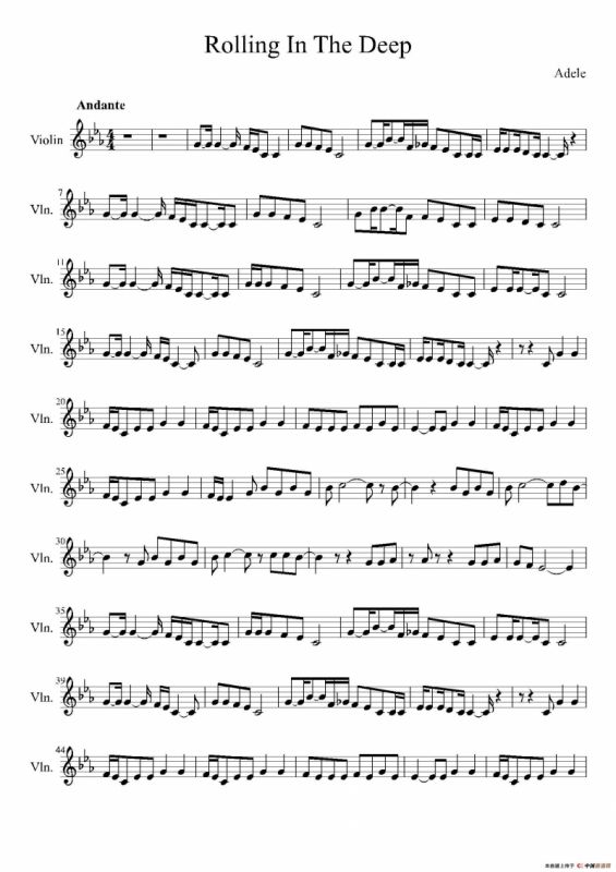 Rolling In The Deep提琴谱,简谱