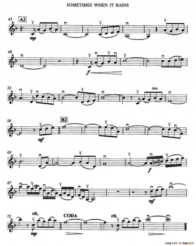 SOMETIMES WHEN IT RAINS(下雨的时候)提琴谱,简谱