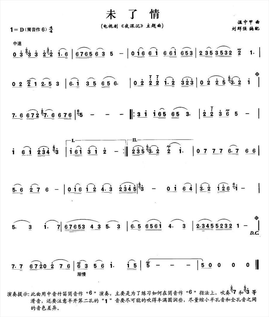 未了情简谱,未了情歌曲简介