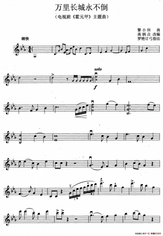 万里长城永不倒(电视剧《霍元甲》主题曲)提琴谱,简谱