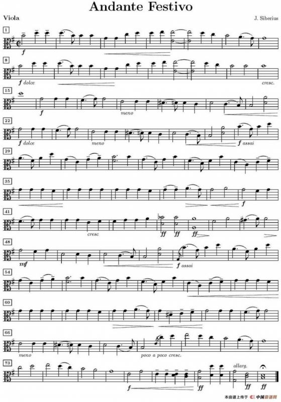 Andante Festivo(活泼的行板、中提琴分谱)提琴谱,简谱"