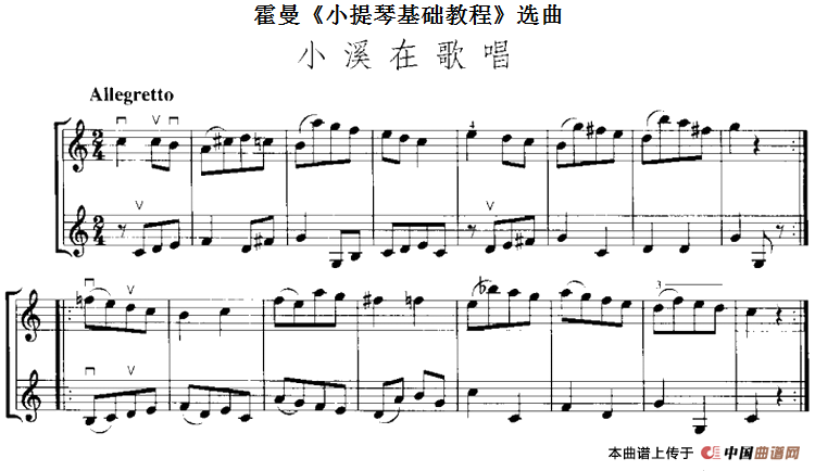 霍曼《小提琴基础教程》选曲:小溪在歌唱(二重奏)提琴谱,简谱"