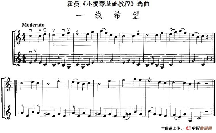 霍曼《小提琴基础教程》选曲:一线希望(二重奏)提琴谱,简谱"