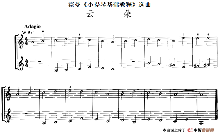 霍曼《小提琴基础教程》选曲:云朵(二重奏)提琴谱,简谱"