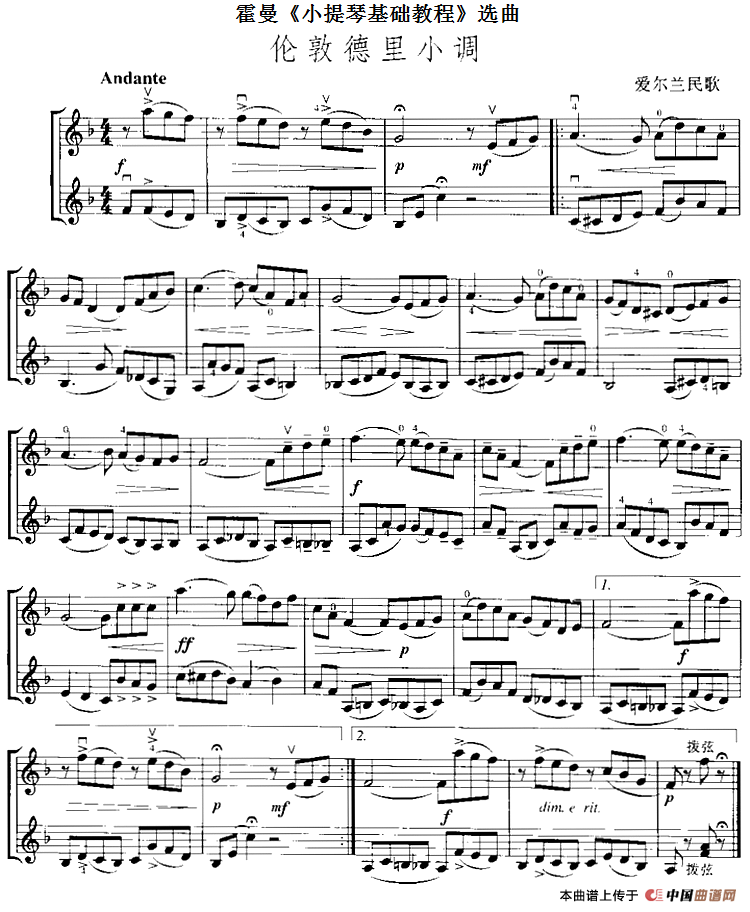 霍曼《小提琴基础教程》选曲:伦敦德里小调(二重奏)提琴谱,简谱"