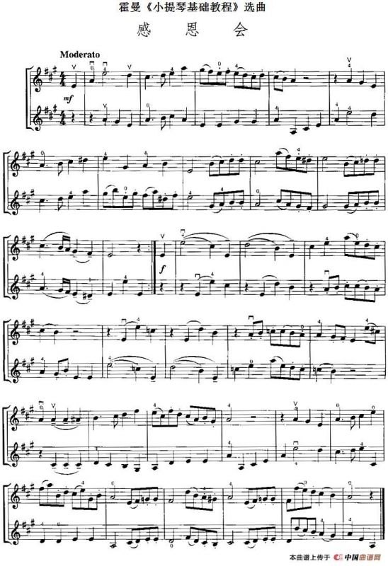 霍曼《小提琴基础教程》选曲:感谢歌(二重奏)提琴谱,简谱"