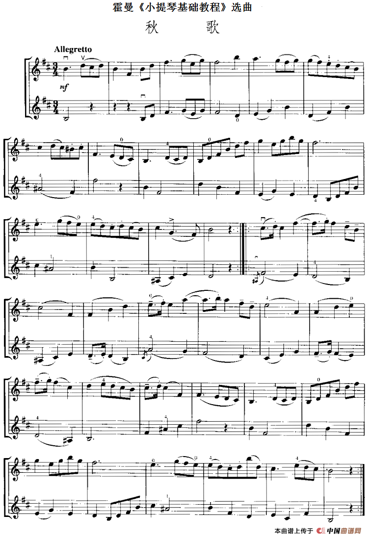 霍曼《小提琴基础教程》选曲:秋歌(二重奏)提琴谱,简谱"