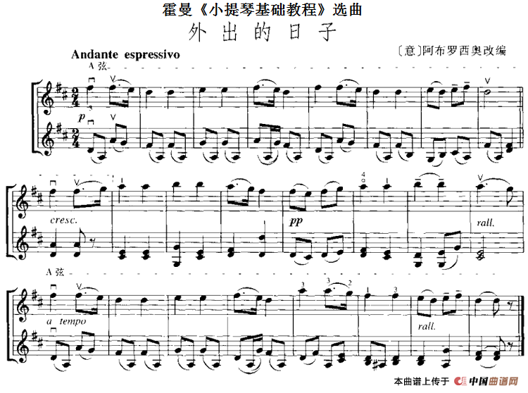 霍曼《小提琴基础教程》选曲:外出的日子(二重奏)提琴谱,简谱"