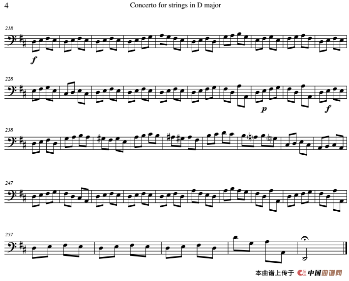 Concerto for strings in D Major(RV121、Contrabass分谱)提琴谱,简谱"