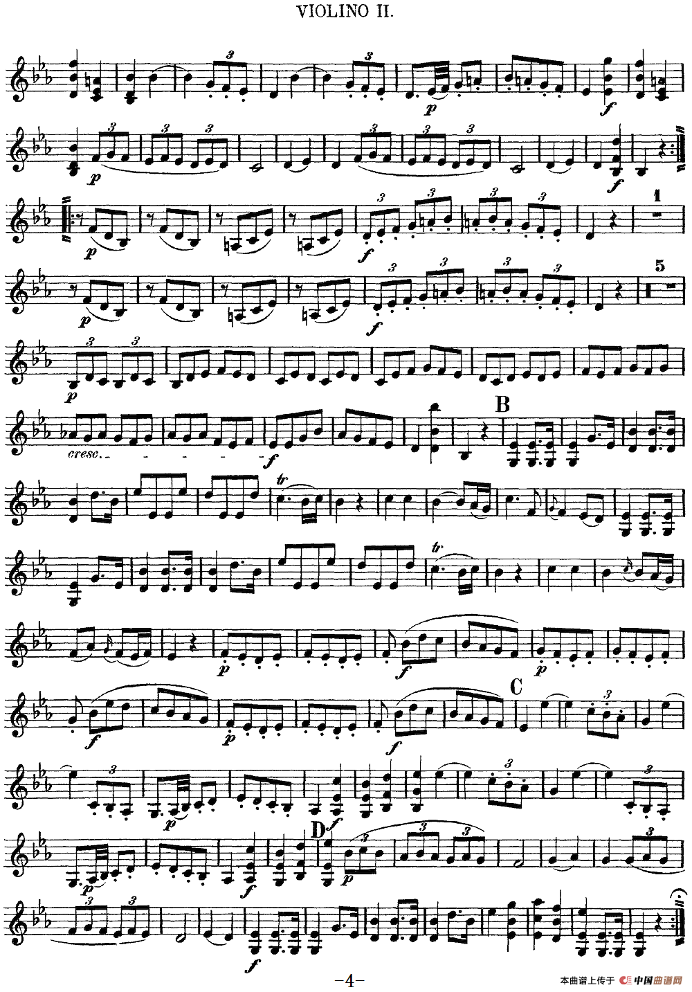 Mozart《Quartet No.6 in Bb Major,K.159》(Violin 2分谱)提琴谱,简谱"