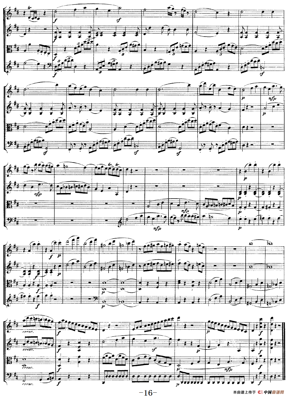 Mozart《Quartet No.20 in D Major,K.499》(Violin 2分谱)提琴谱,简谱"