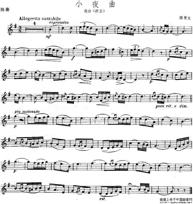 小夜曲提琴谱(《群丑》选段),小夜曲简谱"