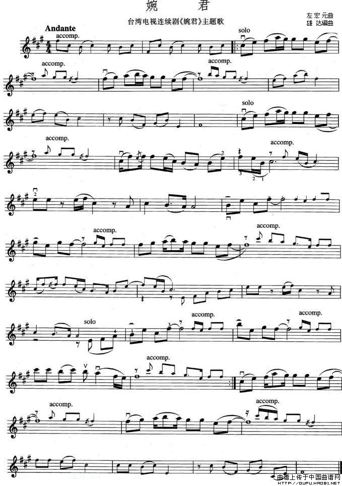 婉君提琴谱(同名电视剧主题曲 [小提琴谱]),婉君简谱"