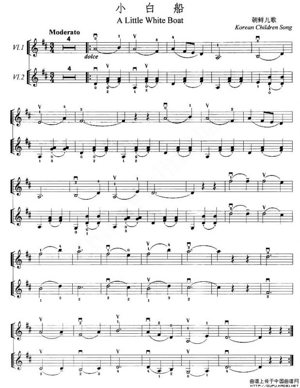 小白船提琴谱(重奏曲),小白船简谱"