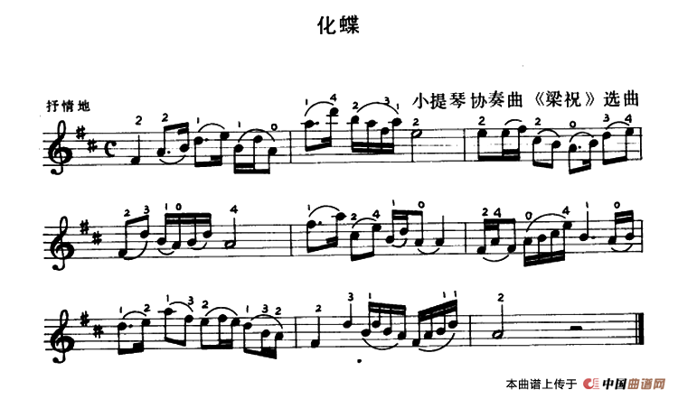 化蝶提琴谱(《梁祝》选曲),化蝶简谱"