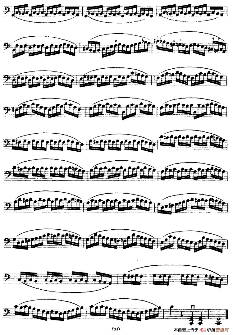 大提琴练习曲:大把位提琴谱(22—33),大提琴练习曲:大把位简谱"