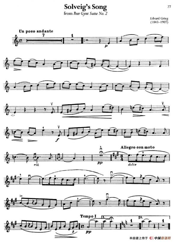 Solveigs Song提琴谱,Solveigs Song简谱"