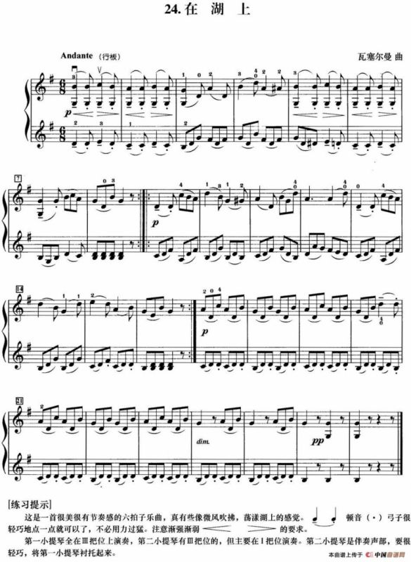 初级小提琴二重奏:在湖上提琴谱,初级小提琴二重奏:在湖上简谱"