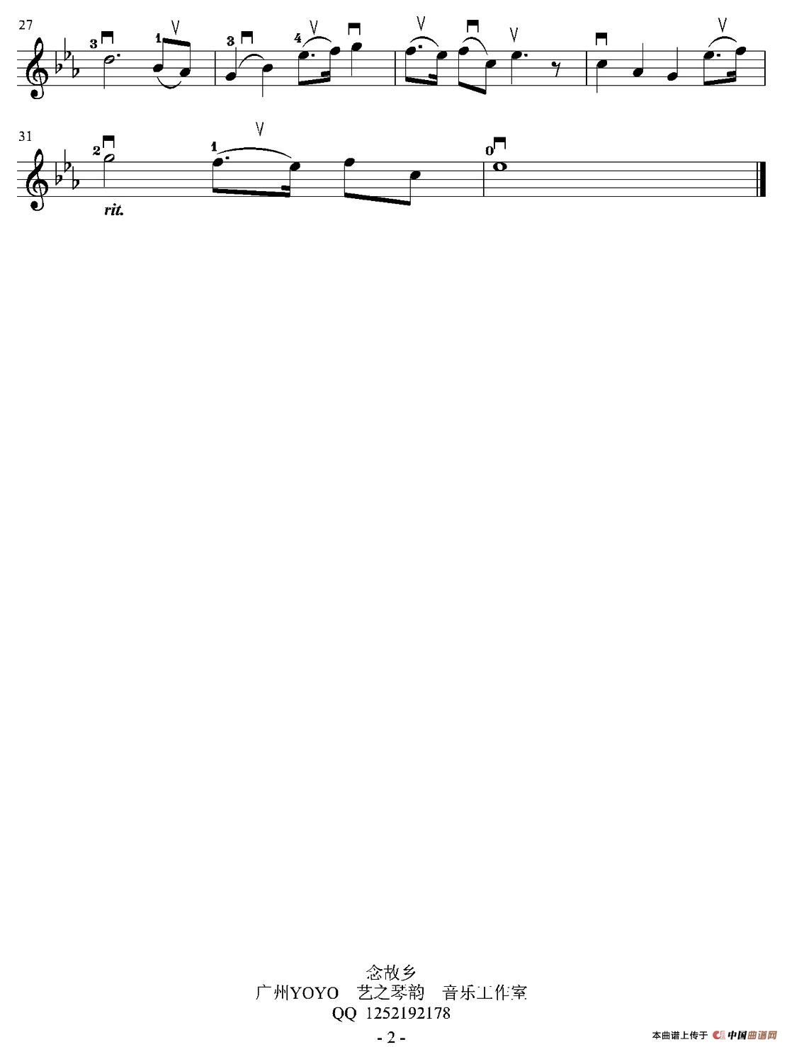 念故乡提琴谱(电视剧《一个人战争》片尾曲),念故乡简谱"