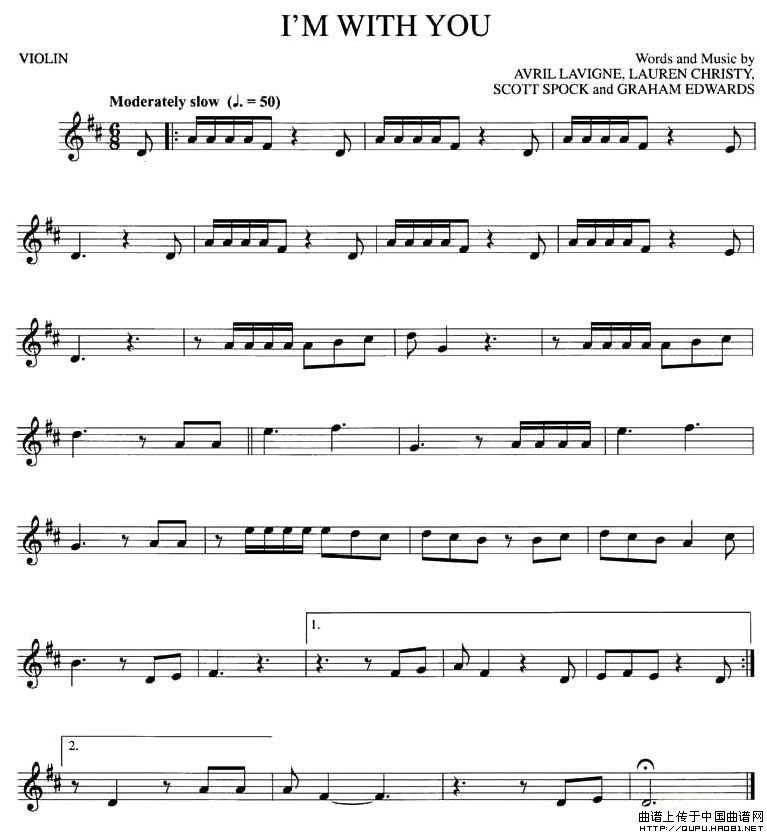 I'M WITH YOU提琴谱,I'M WITH YOU简谱"