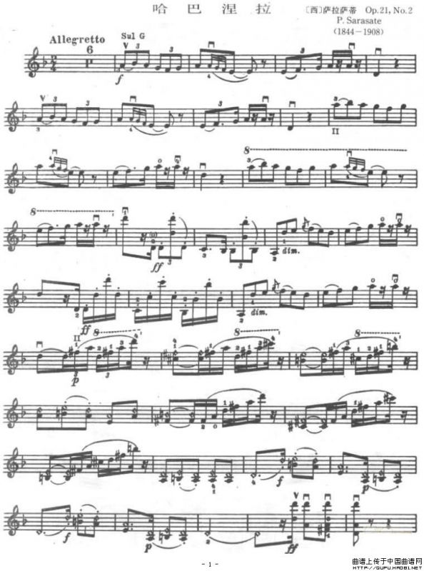 哈巴涅拉提琴谱,哈巴涅拉简谱"