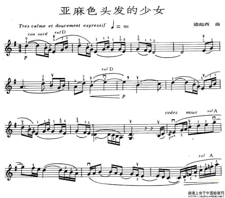 亚麻色头发的少女提琴谱,亚麻色头发的少女简谱"