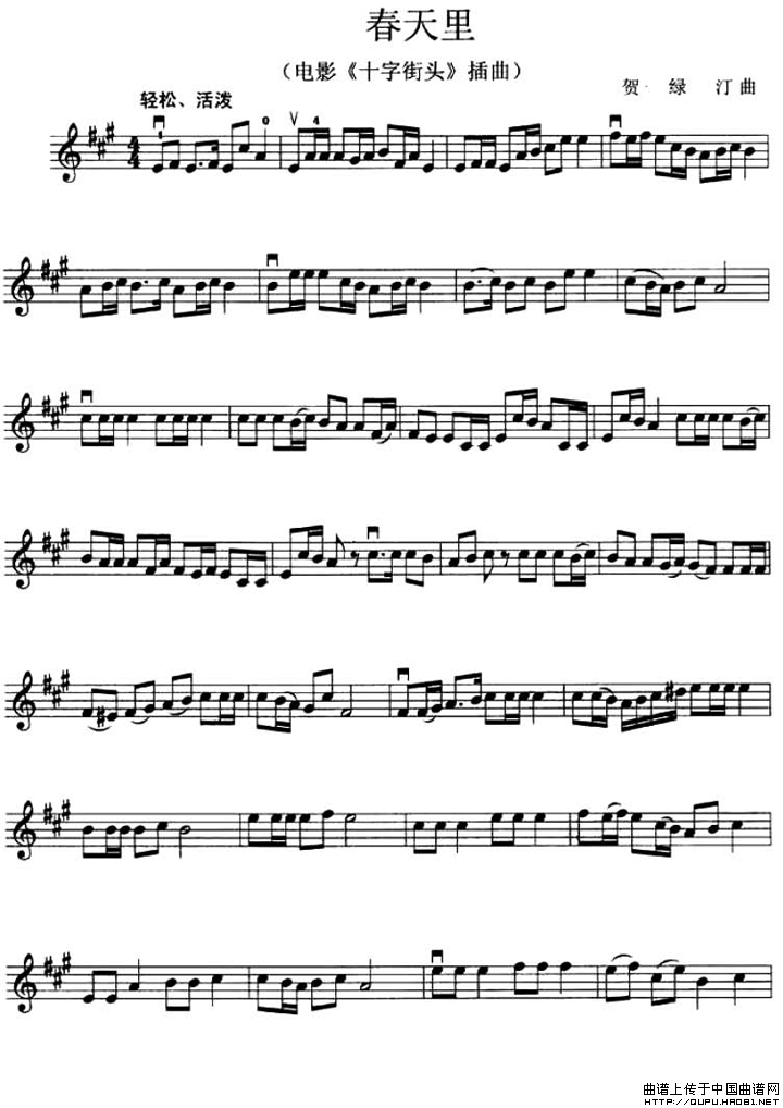 春天里提琴谱(电影《十字街头》插曲),春天里简谱"