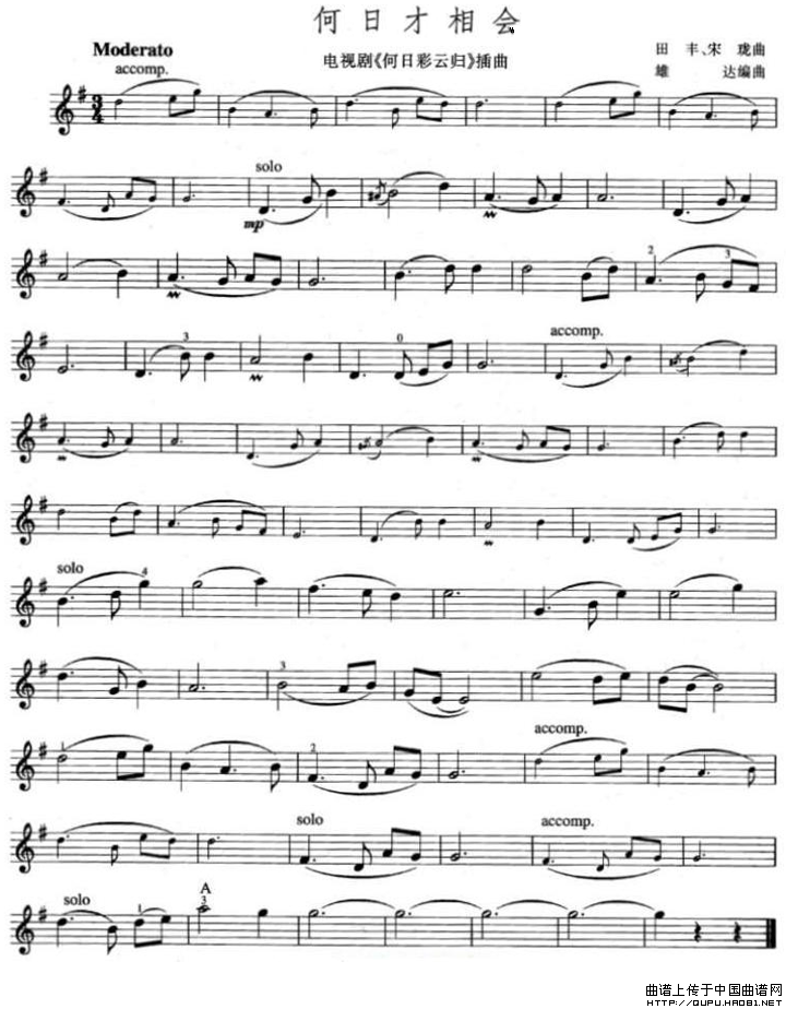 何日才相会提琴谱(电视剧《何日彩云归》插曲),何日才相会简谱"