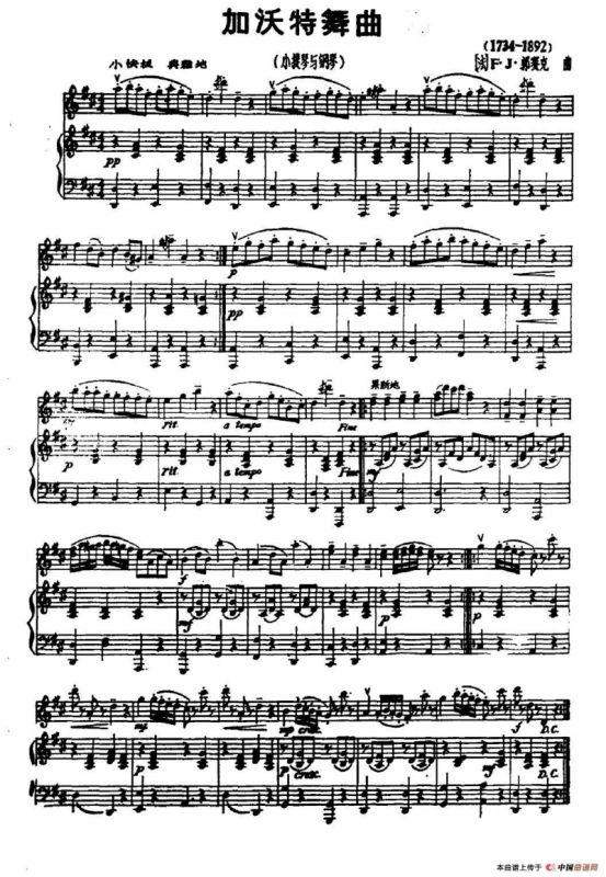 Gavotte(加沃特舞曲)(小提琴+钢琴)提琴谱,简谱"