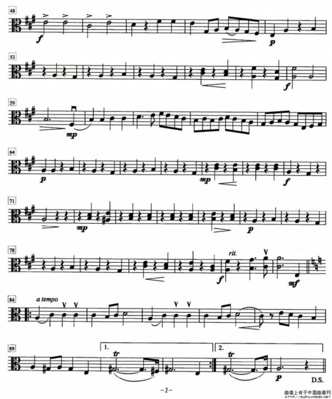金婚曲(加布瑞尔马利作曲版、四重奏中提琴分谱)提琴谱,简谱"